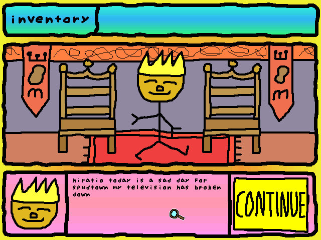 Potato Adventure is the 3rd in the Potato Series. The game is a parody of classic point and click adventure games that had non-sensical puzzles.