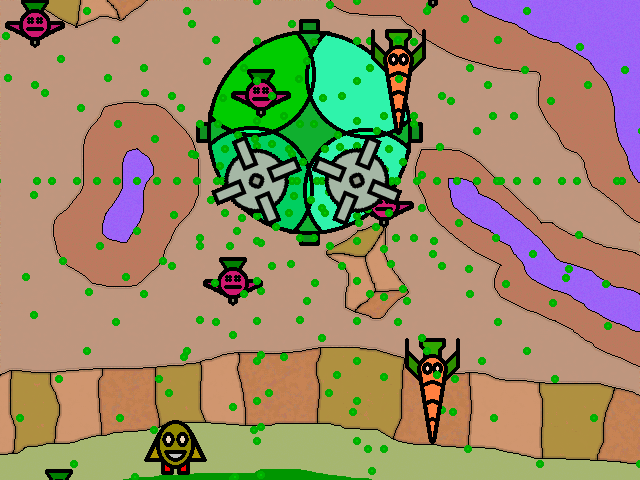 The year is 29392Gw. The Universe stands in peril. The evil A.X.I.S. leader Cabbage has stolen a potato masher purported to have the power to bring to extinction all existence. The King of Spud Town contacts you and generously offers you infinite "space monies" if you can kill Cabbage, capture the potato masher, and deliver it back to the King.